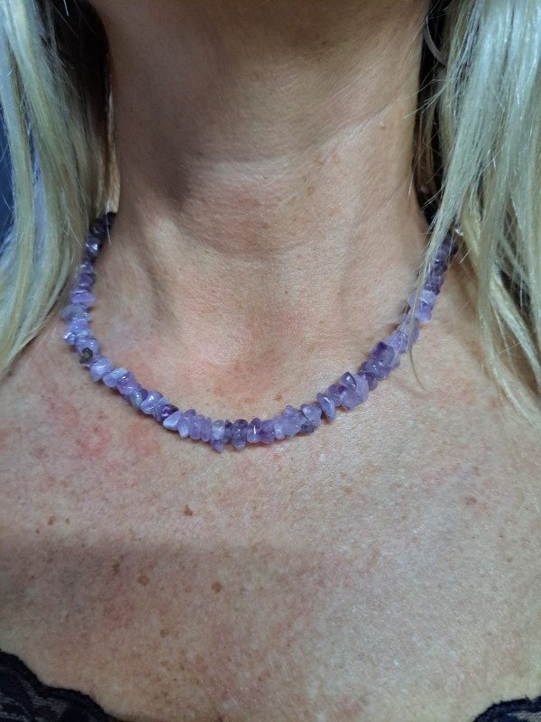 Collar amatista (con cadenita extensora). Diseño original. Hecho a mano.