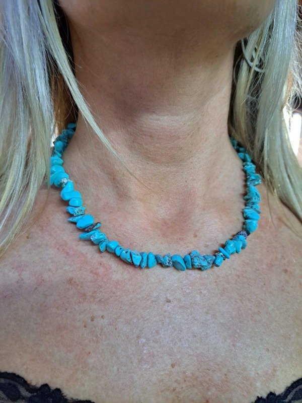 Collar turquesa (con cadenita extensora). Diseño original. Hecho a mano.