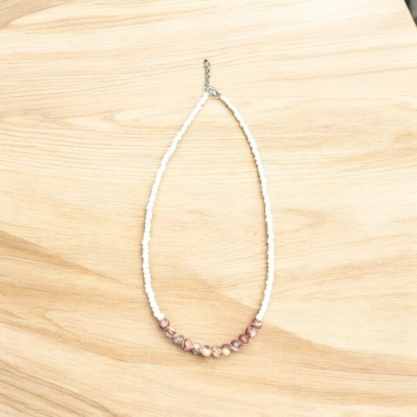 Collar piedras naturales y mostacillas (con cadenita extensora). Diseño original. Hecho a mano.